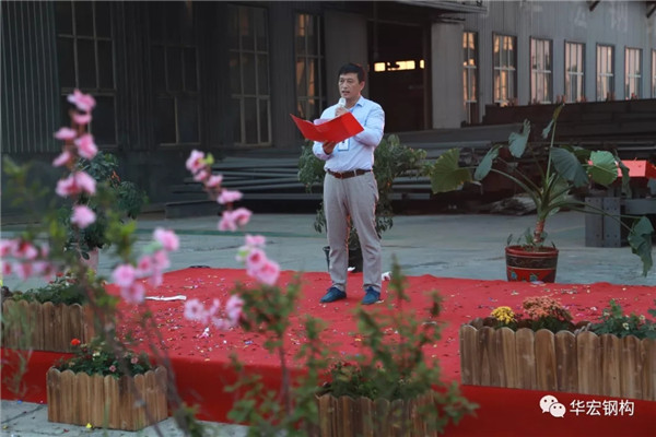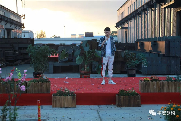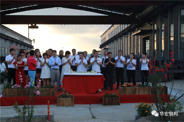 2018年8月8日晚18點(diǎn)00分,在公司鋼構(gòu)廠區(qū)華宏軒舉行了《華宏鋼構(gòu)九周年慶典》,公司董事長朱宏志、總經(jīng)理朱宏勇、財(cái)務(wù)總監(jiān)劉肖等公司領(lǐng)導(dǎo)和各界嘉賓參加了會(huì)議。以下為大會(huì)現(xiàn)場實(shí)錄。