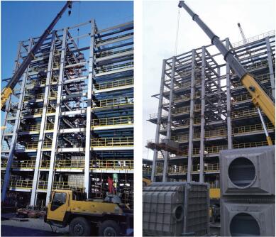 技術(shù)亮點(diǎn):框架總高度為28.6米,單體結(jié)構(gòu)1000噸,本裝置為煉油廠核心框架,構(gòu)建復(fù)雜,技術(shù)精度要求高。