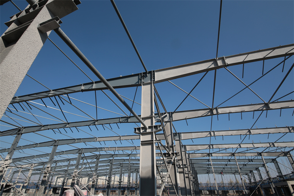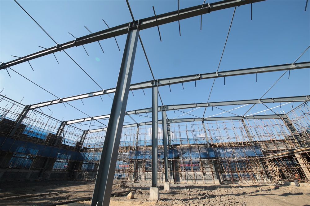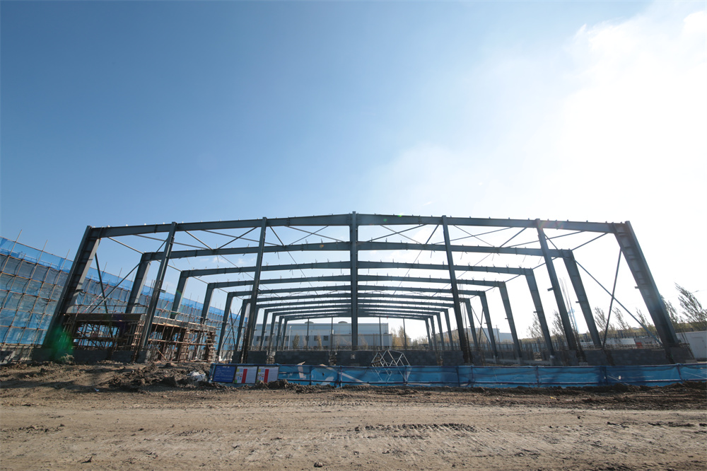 項(xiàng)目特點(diǎn):該項(xiàng)目共計(jì)分為5個單體,*大單體建筑面積為24772.11㎡。*大單體長度為207.6m、寬度108m、高度10.2m。*大單體共計(jì)布置16臺吊車,屋面設(shè)置多條電動采光天窗。兩側(cè)縱墻分別縣挑5m寬雨棚,雨棚長度198m。該項(xiàng)目外墻均為土建外墻,鋼柱與士建外墻連接節(jié)點(diǎn)復(fù)雜,增加車間的制作難度。